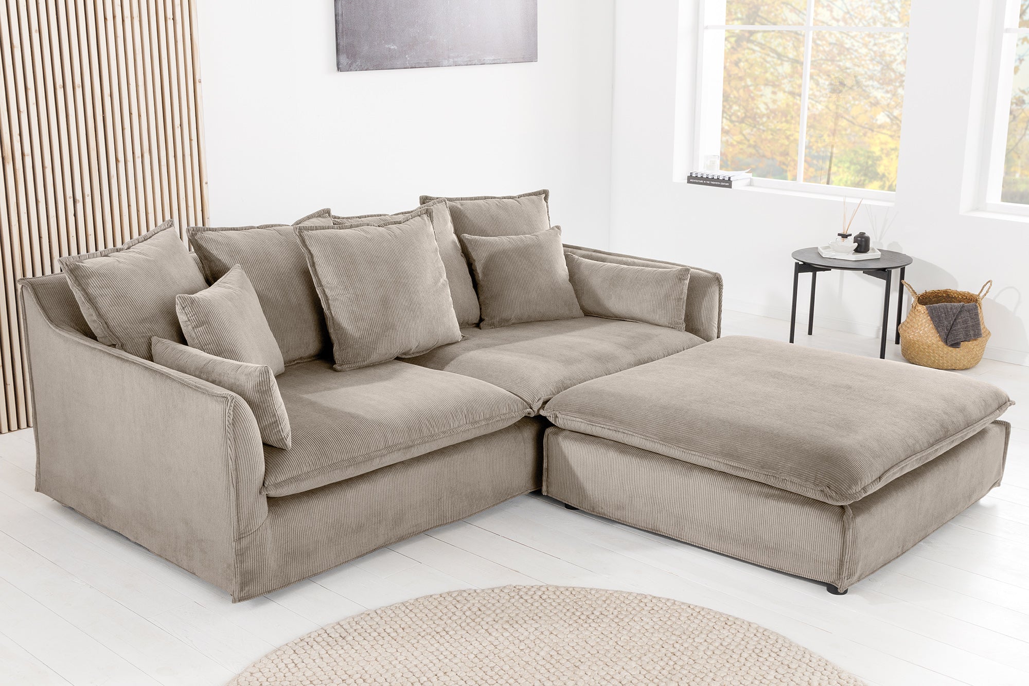 Sofa HEAVEN 200cm 3-zitsbank veringkern afneembare hoes corduroy grijsbeige